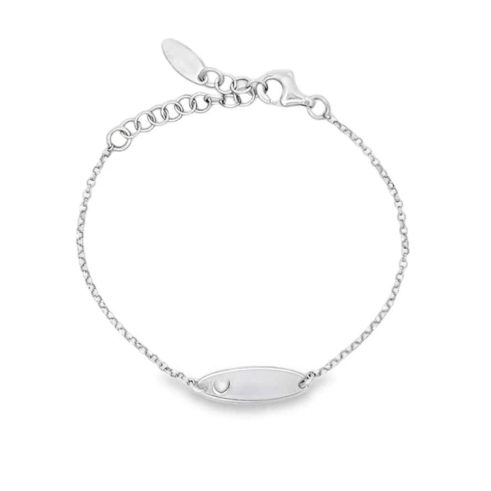 Нежна сребърна гривна My Little Token (проба 925) с родиево покритие и мини плочка със сърчице за персонална гравюра – име, дата или малък символ. С тази гривничка всяко движение на ръчичката се превръща в малка магия, а споменът, издълбан върху плочката, остава завинаги.