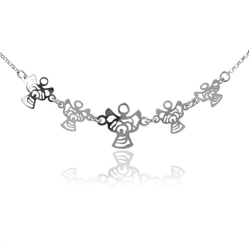 Нежно родирано сребърно колие ” Ангелчета”. Пет прецизно полирани и матирани ангелчета на фино сребърно синжирче с опция за регулиране на дължината. Прекрасен символичен подарък!