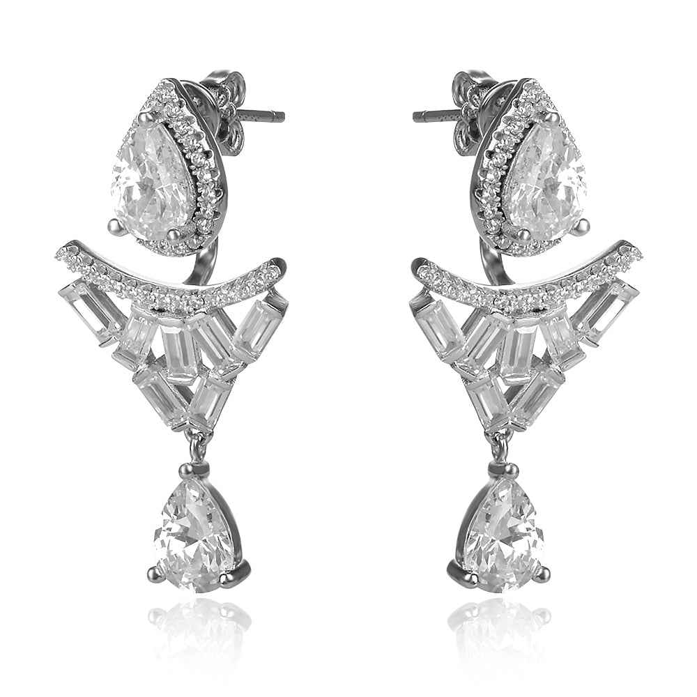 Сребърни обеци с родиево покритие и цирконии. Тези малки съвършенства се състоят от няколко части, които могат да се комбинират по три различни начина. Мъничък ювелирен трансформърс, които ще се превърне в любимо допълнение към всеки вечерен или дневен оутфит.