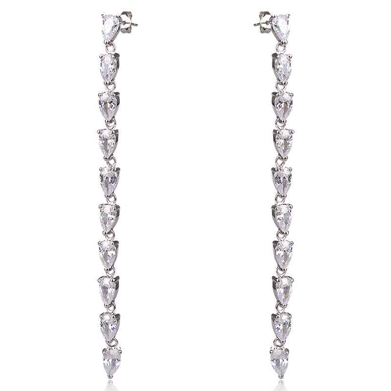 Дълги сребърни обеци на винт с родиево покритие и цирконии. Прекрасен детайл към вечерна празнична визия.