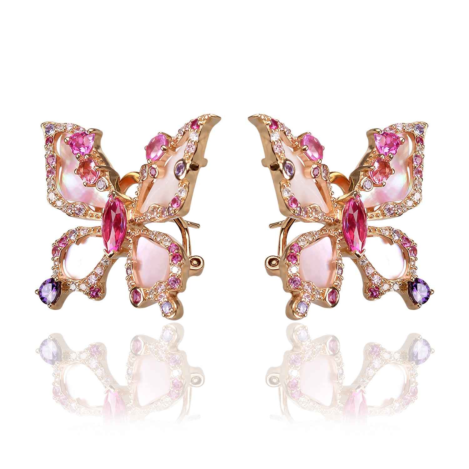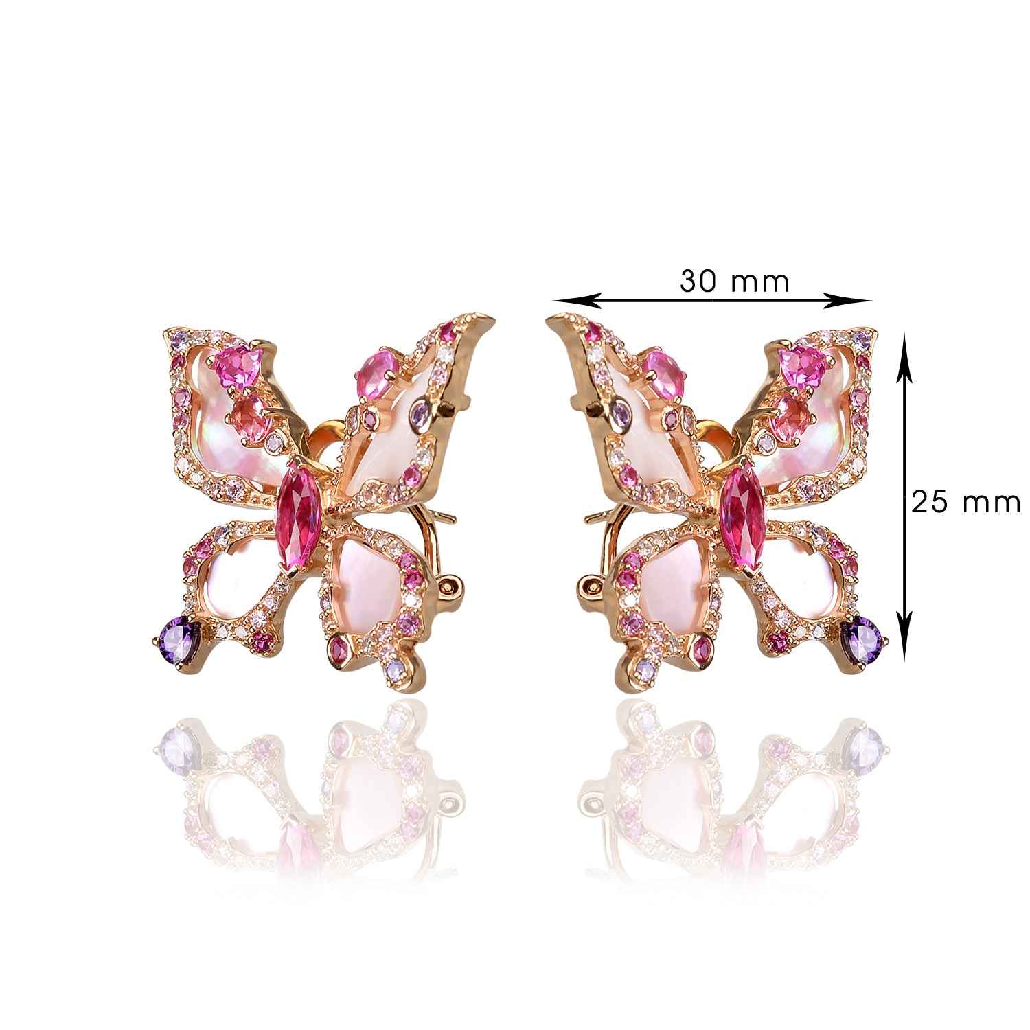Сребърни обици с позлата, бял седеф, цирконии и турмалини.