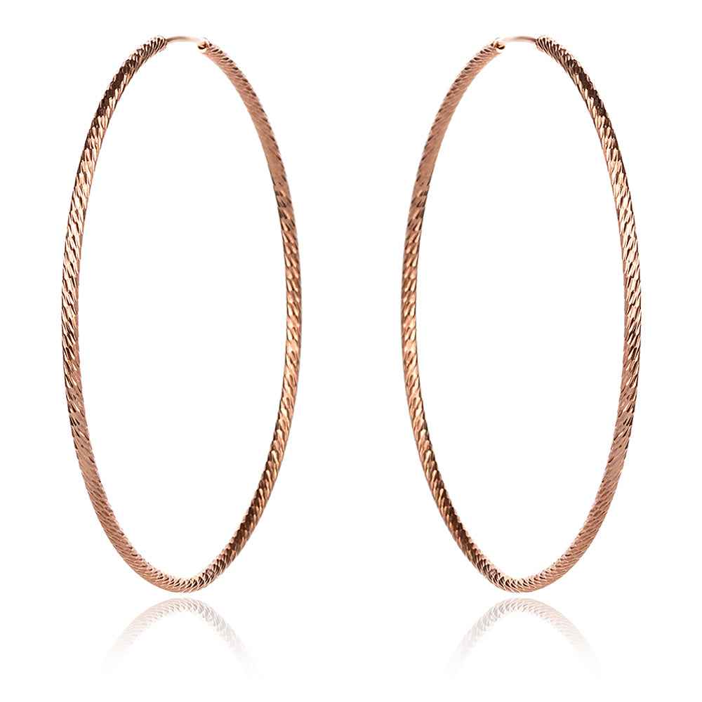 Италиански сребърни обеци халки с розова позлата. Диамантената обработка на профила създава усещането за инкрустация с камъни.