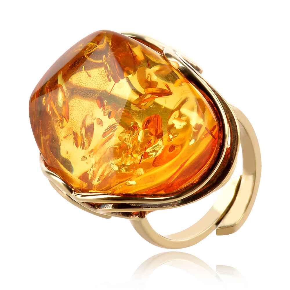 Сребърен пръстен с позлата и шлифован Балтийски кехлибар с цвят на светъл коняк. Халката на пръстена е отворена и размерът може да бъде коригиран. Перфектната полировка на семплия обков и красивата каса, обгърнала камъка, правят това класическо бижу вечен аксесоар, подходящ за всеки изискан случай.