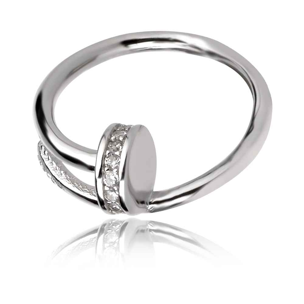 Сребърен комплект обеци и медальон във форма на извит пирон. Моделът е вдъхновен от минималистична колекция на Cartier. Обеците са на удобно закопчаване тип халка на долна панта, а медальонът е без държач и ефектно се нанизва на синджир.