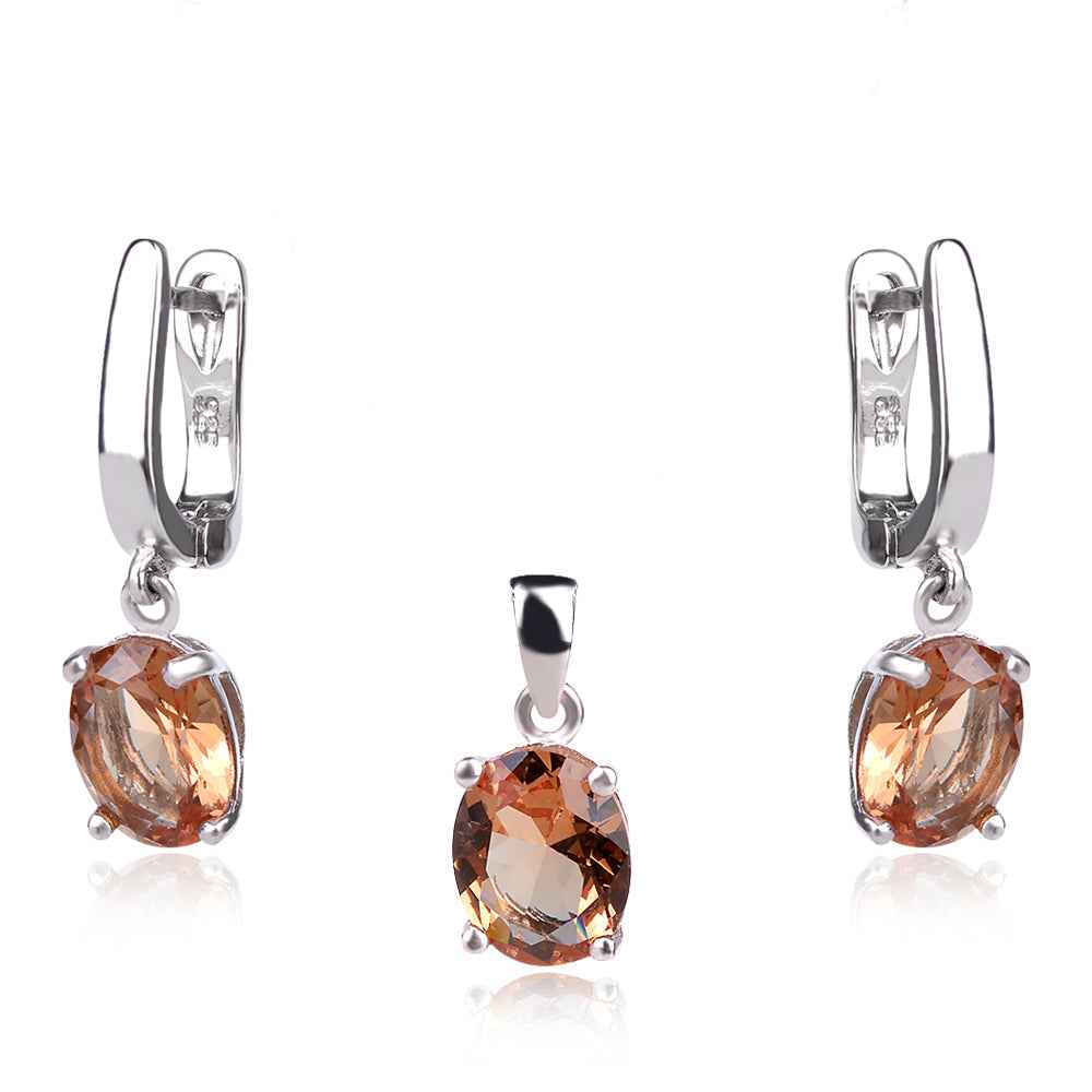 Сребърен комплект с фасетиран лабораторен султанит, инкрустиран в сребърна каса.