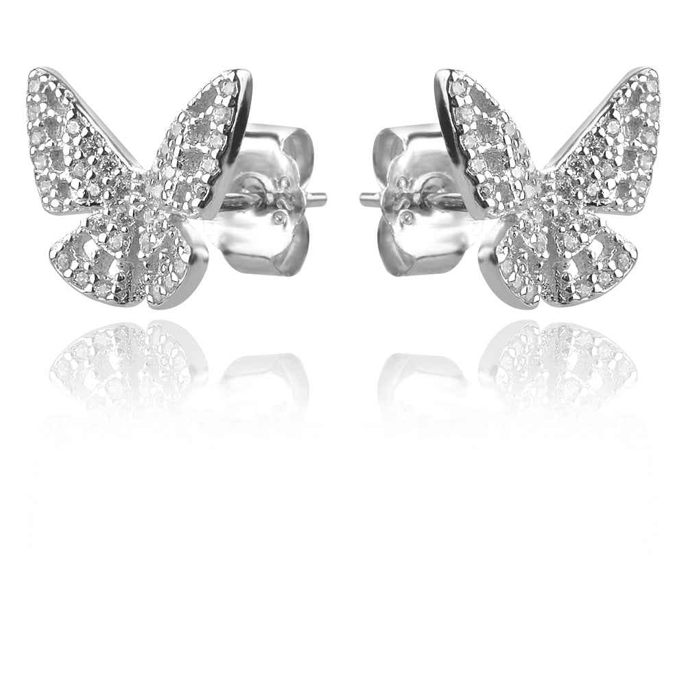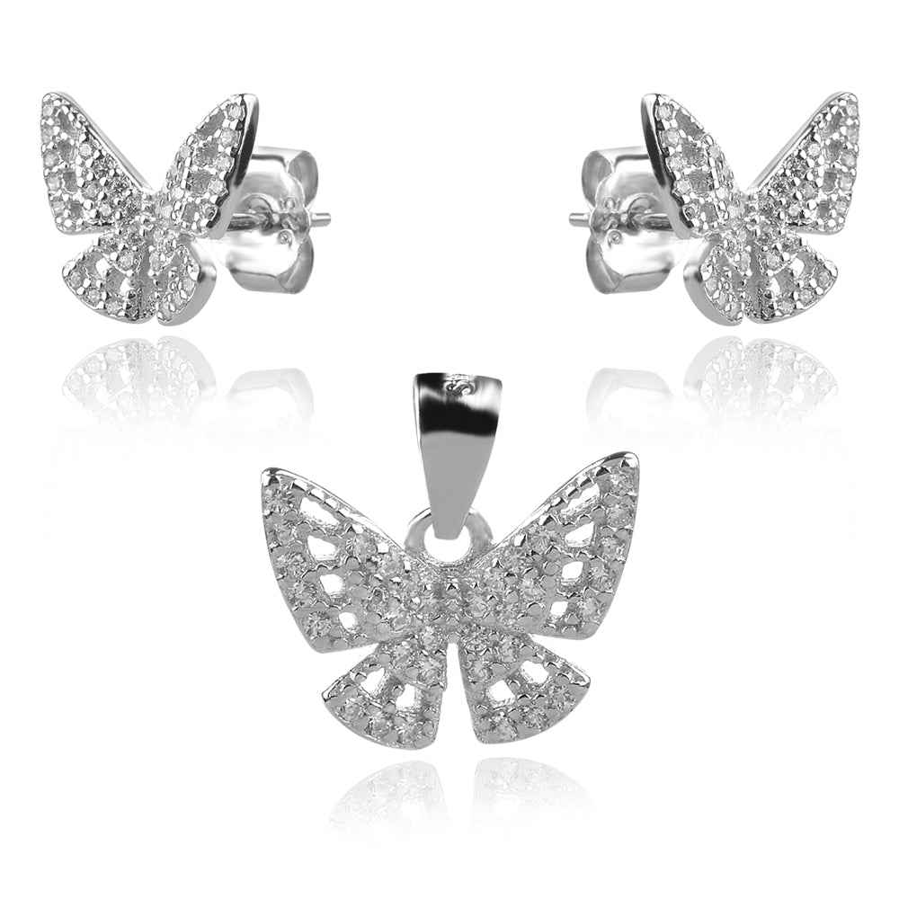 Миниатюрен сребърен комплект Пеперуди включващ медальон и обеци на винт.