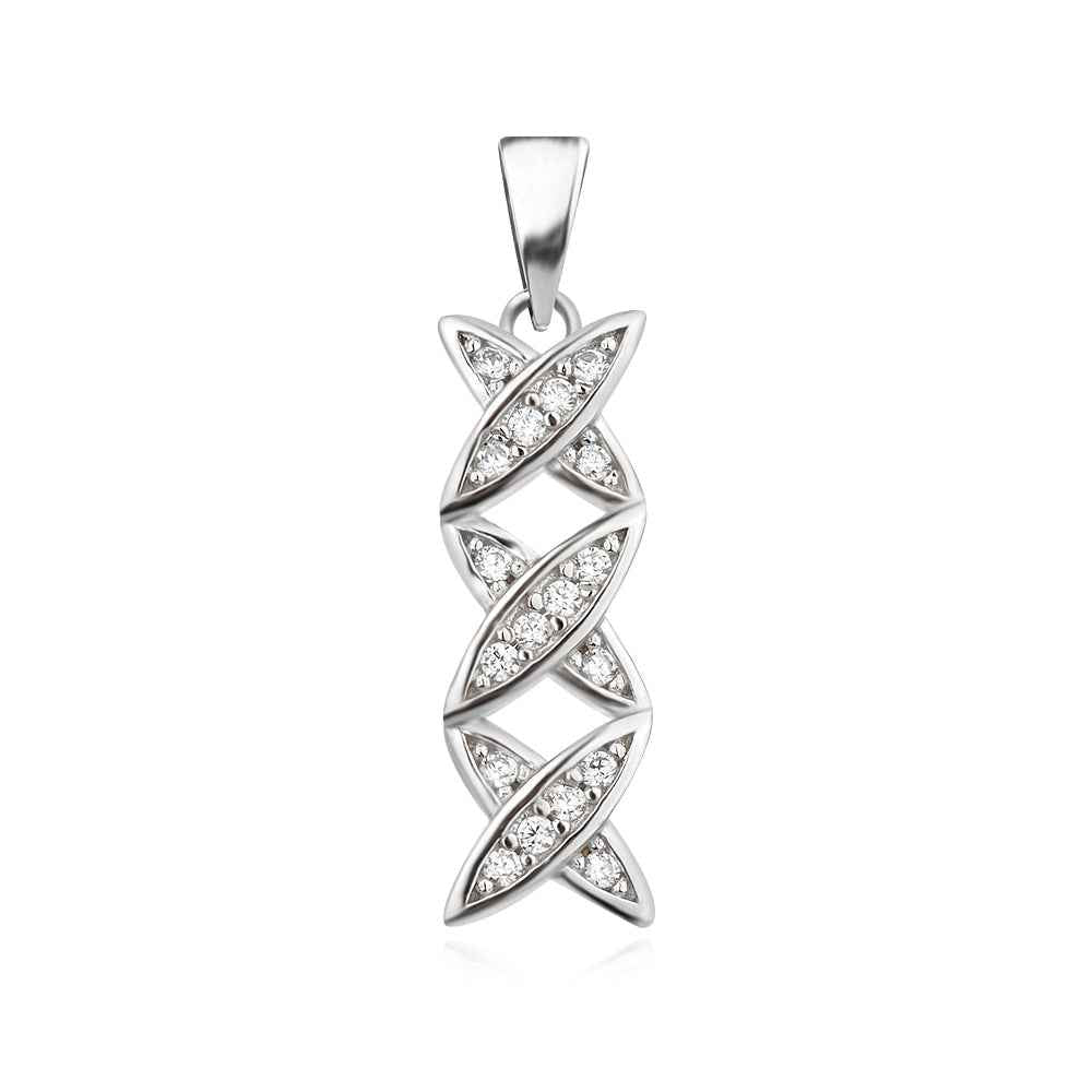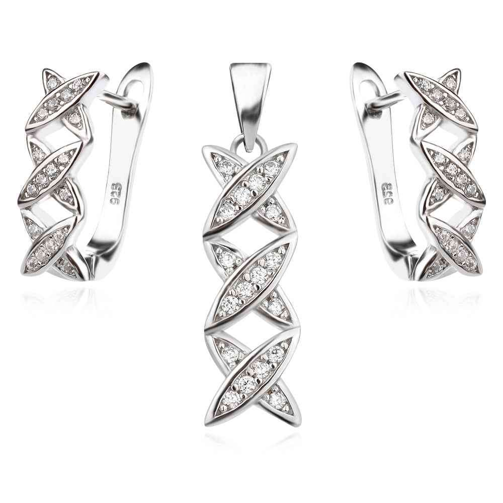 Сребърен комплект от обеци и медальон с модернистичен дизайн и деликатен блясък от цирконии. Бижуто е перфектна полировка и родиево покритие, което предпазва среброто от оксидация. Обеците са с удобно английско закопчаване.