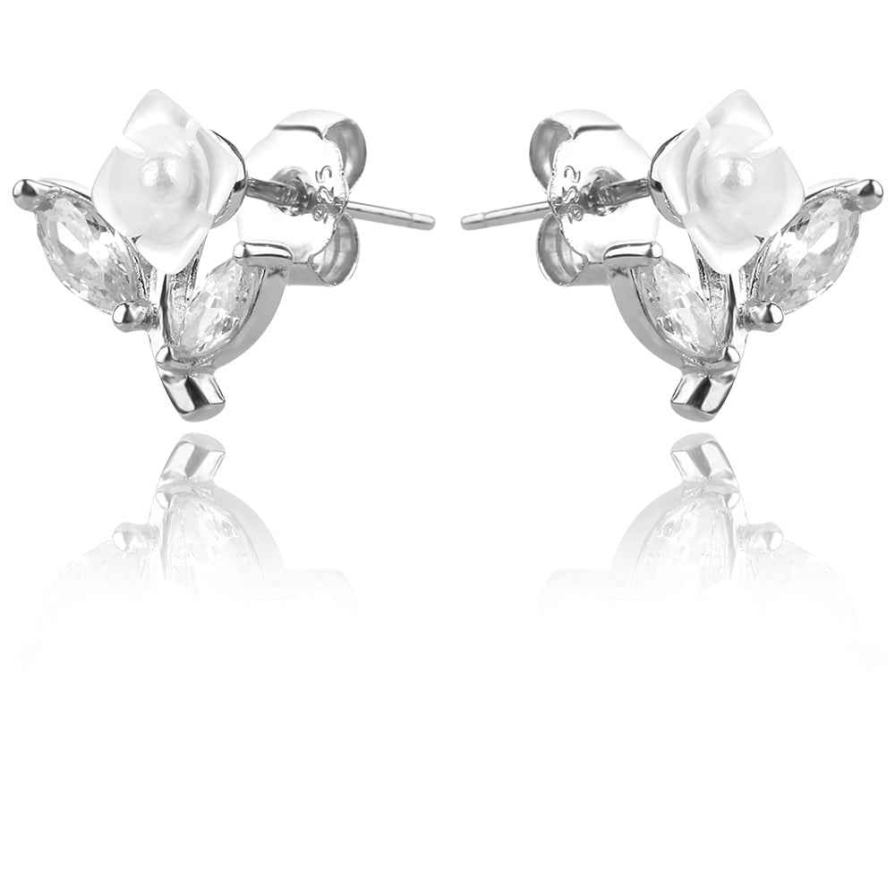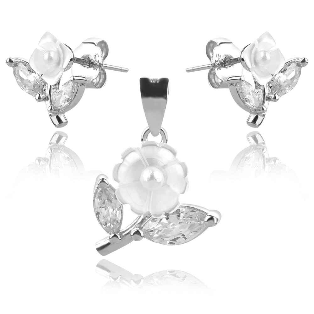 Нежен сребърен комплект във формата на цвете с цвят от седеф, тичинка от микро перла и листенца от циркон. Една миниатюра, която ще внесе много настроение във визията.
