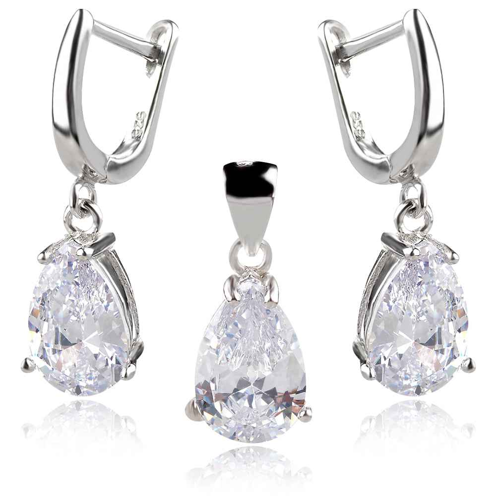 Сребърен комплект от обеци и медальон с циркон във формата на капка, инкрустиран в сребърна каса. Перфектната полировка и родиевото покритие подчертават сиянието на камъка и гарантират блясъка на бижуто. Едва ли има по-задължително украшение в бижутерката на всяка дама.