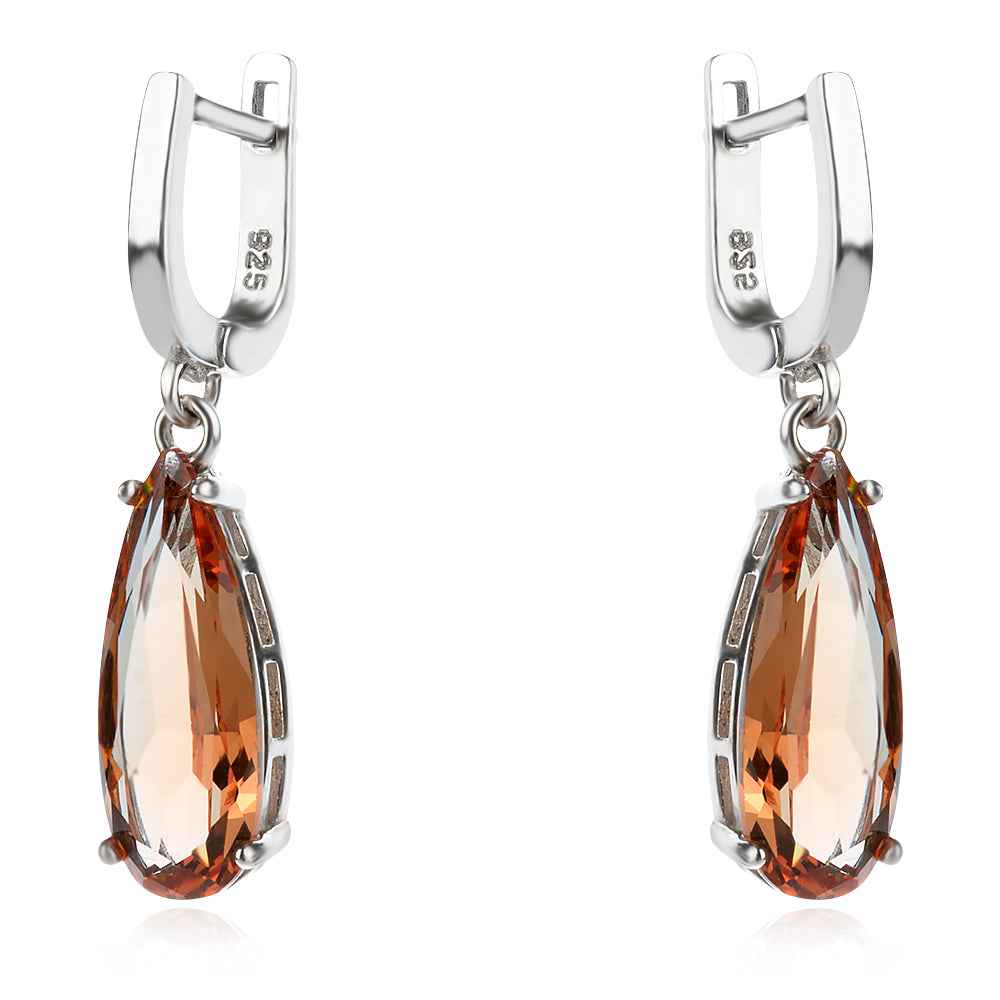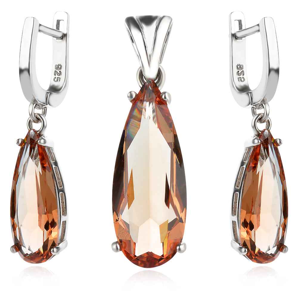 Сребърен комплект обеци и медальон с фасетиран лабораторен султанит във формата на елегантна издължена капка. Семплият класически обков превръща бижуто в перфектния аксесоар както за повод, така и за спортно-елегантна визия.