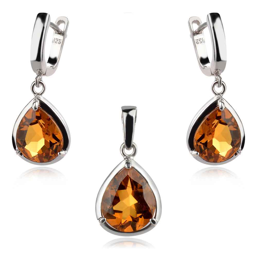 дължина медальон- 19мм, дължина обеци-25мм, размер на камъка- 7мм х 5мм