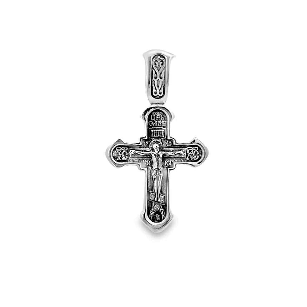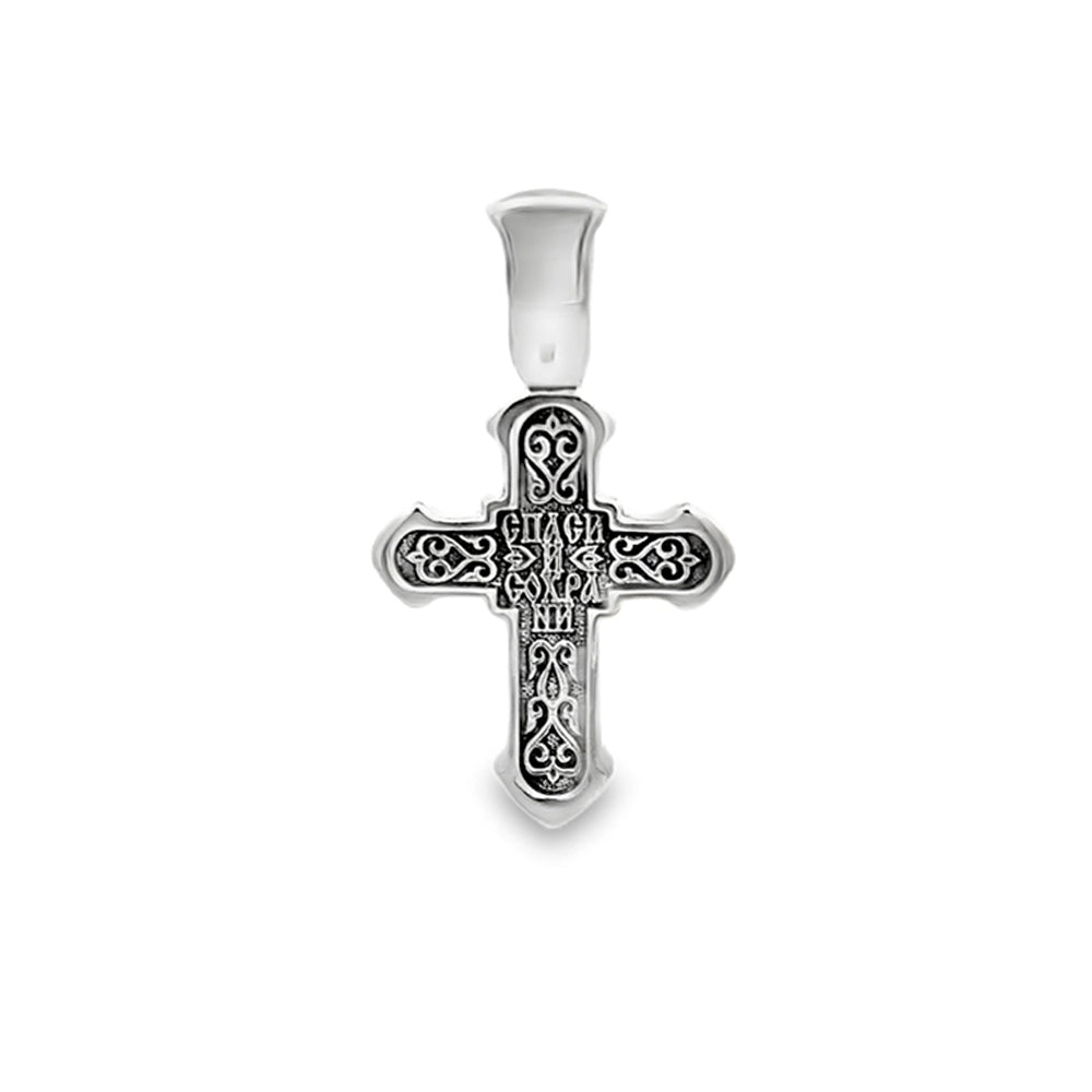 Сребърен православен кръст с разпятие, изработен с внимание към всеки детайл.