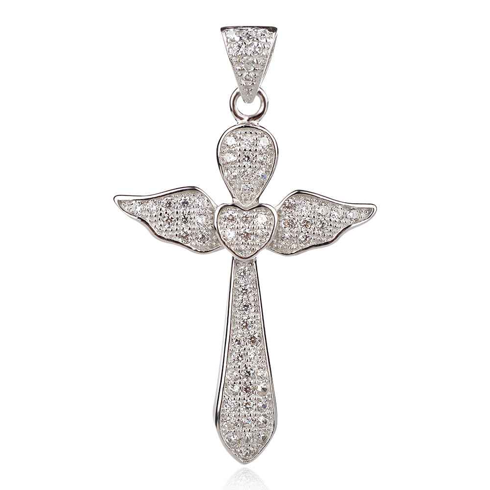 Сребърен кръст с цирконии и алтернативна форма, наподобяваща ангел със сърце.