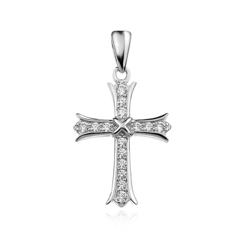 Малък сребърен кръст с цирконии и родиево покритие, което предпазва среброто от оксидация. Подходяш подарък за кръщене.
