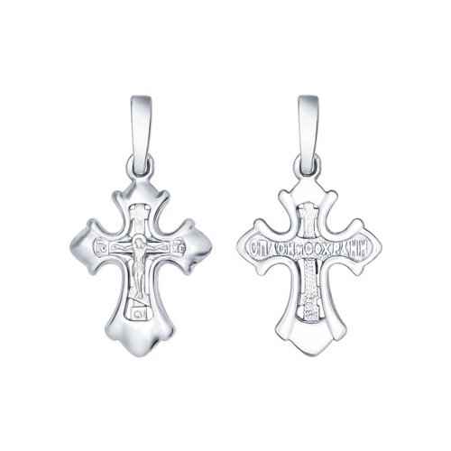 Сребърен православен кръст с разпятие и текст "Спаси и сохрани" на гърба. Кръстът е с родиево покритие, което предпазва среброто от оксидация и запазва блясъка на бижуто.