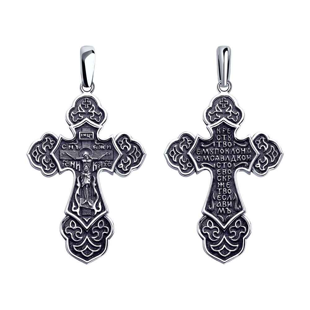 Сребърен православен кръст с разпятие на лицето и “Спаси и сохрани” на гърба. Кръстът е с прецизно родиево покритие, което предпазва среброто от оксидация.