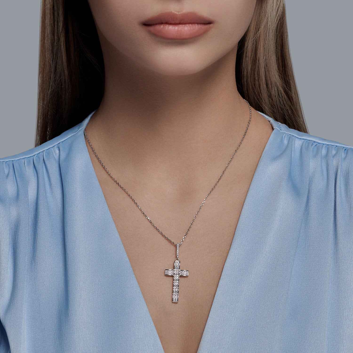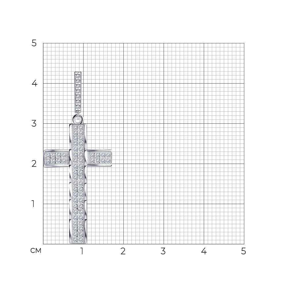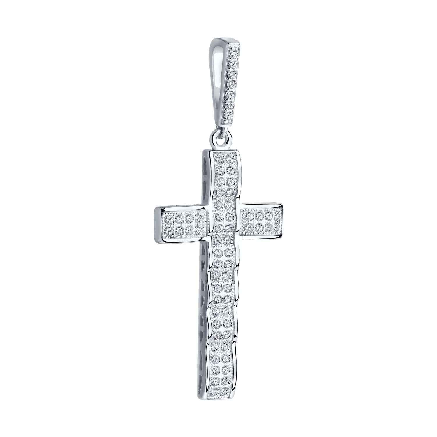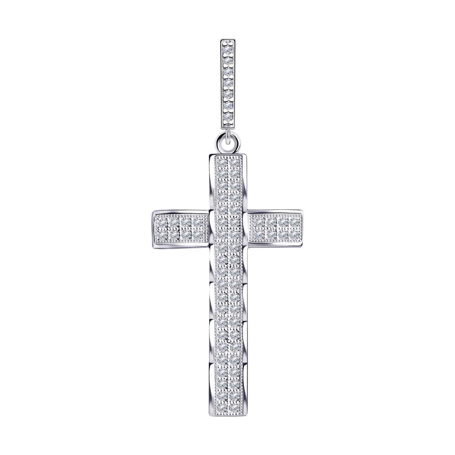 Сребърен кръст с микро цирконии на бранда Sokolov. Бижу, символ на вяра, духовност и божествена защита. Бижуто е с безупрачна изработка и прецизно родиево покритие, което предпазва среброто от оксидация и запазва блясъка на бижуто.