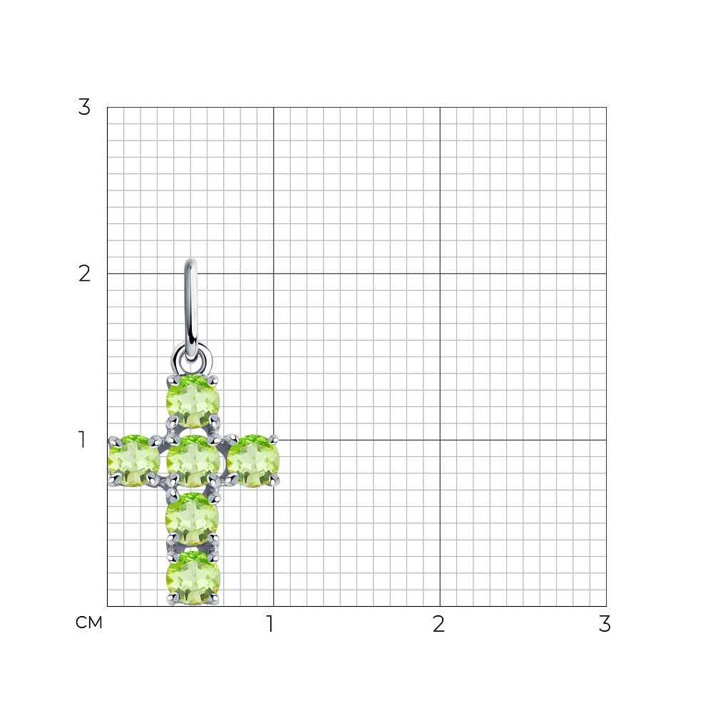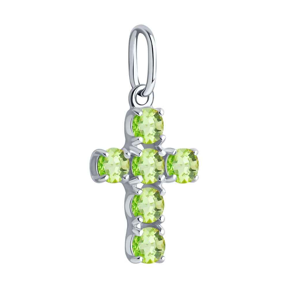 Сребърен класически кръст с естествени фасетирани хризолити на бранда Sokolov. Деликатно бижу, символ на вяра, духовност и божествена защита. Бижуто е с безупрачна изработка и прецизно родиево покритие, което предпазва среброто от оксидация и запазва блясъка на бижуто.