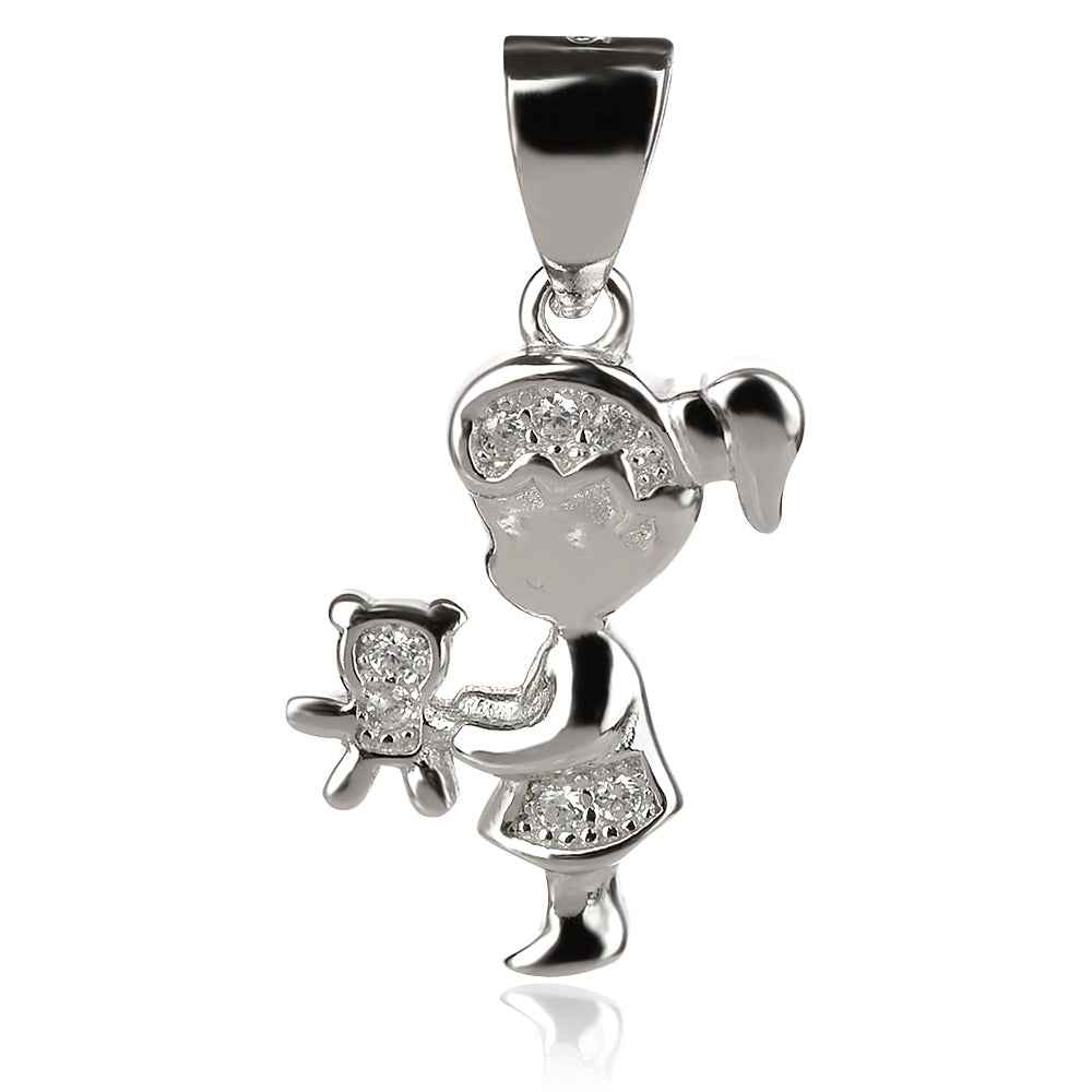 Сребърен медальон "Момиченце с мече".