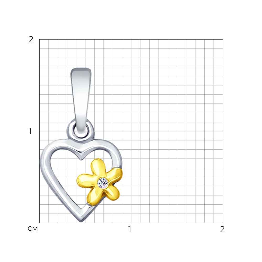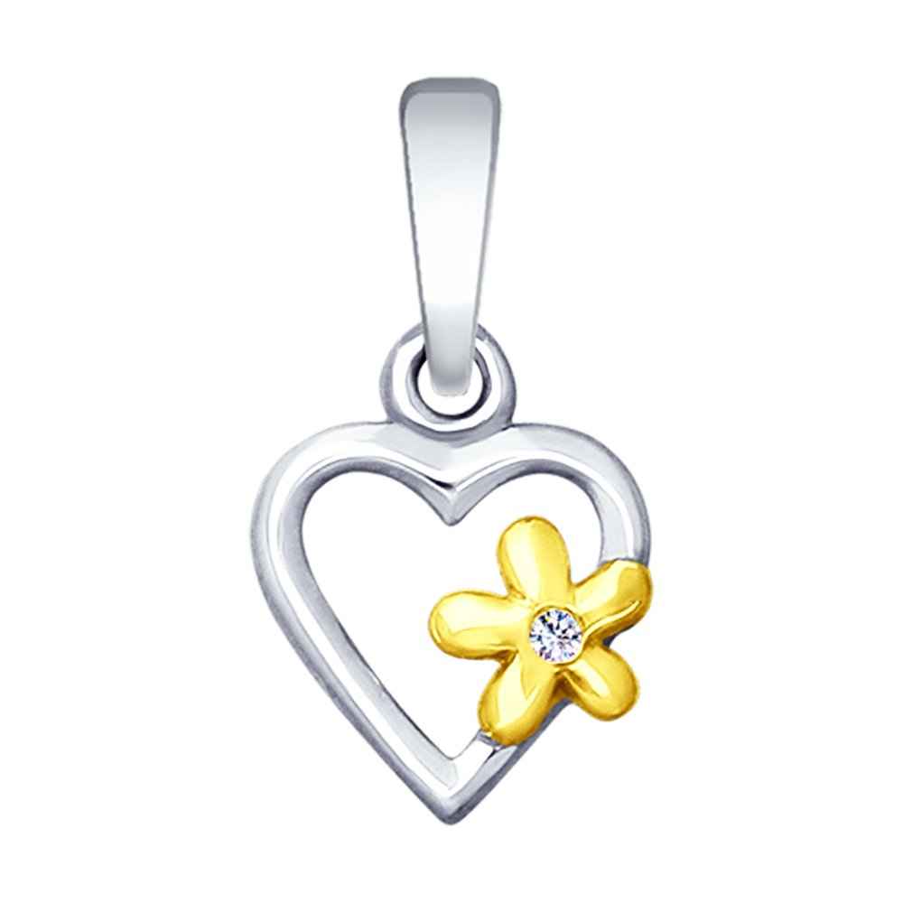 Миниатюрно сребърно медальонче сърце с позлатено цветче и инкрустиран естествен диамант. Бижуто е с перфектна полировка.