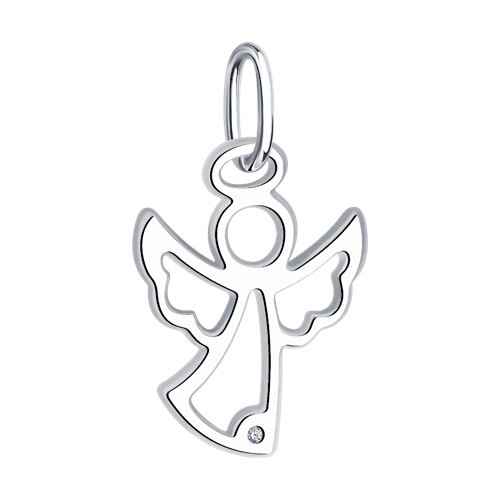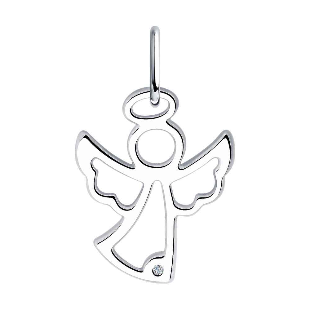 Малко сребърно медальонче ангелче с инкрустиран естествен диамант. Бижуто е с перфектна полировка и прецизно родиево покритие.