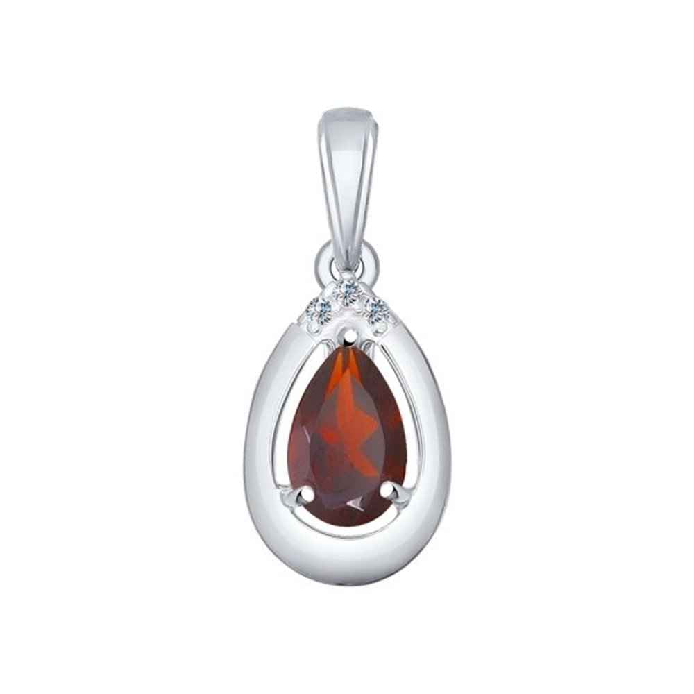 Сребърен медальон с естествен гранат капка в елегантен обков. Бижуто е с префектна полировка и прецизно родиево покритие, което предпазва среброто от оксидация.