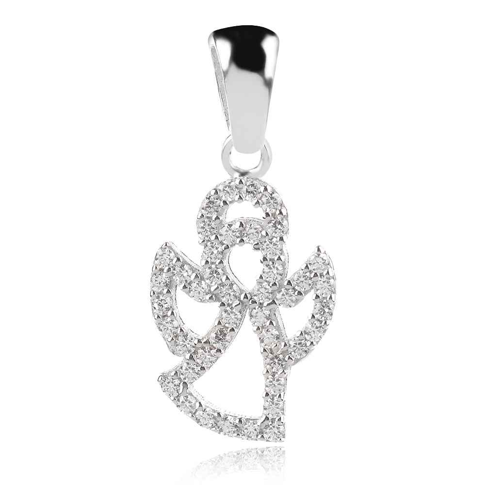 Сребърен медальон ефирно ангелче, обсипано с цирконии- малко талисманче, което да носиш навсякъде със себе си.
