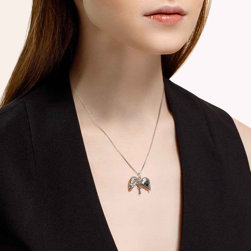 Всяко момиче мечтае за необикновен знак на внимание. Сребърната висулка във формата на ключ от сърцето несъмнено ще бъде оценена. Ажурната половина на висулката, нежните любовни думи и класическата символика на най-топлите чувства ще разнежат всяка дама.