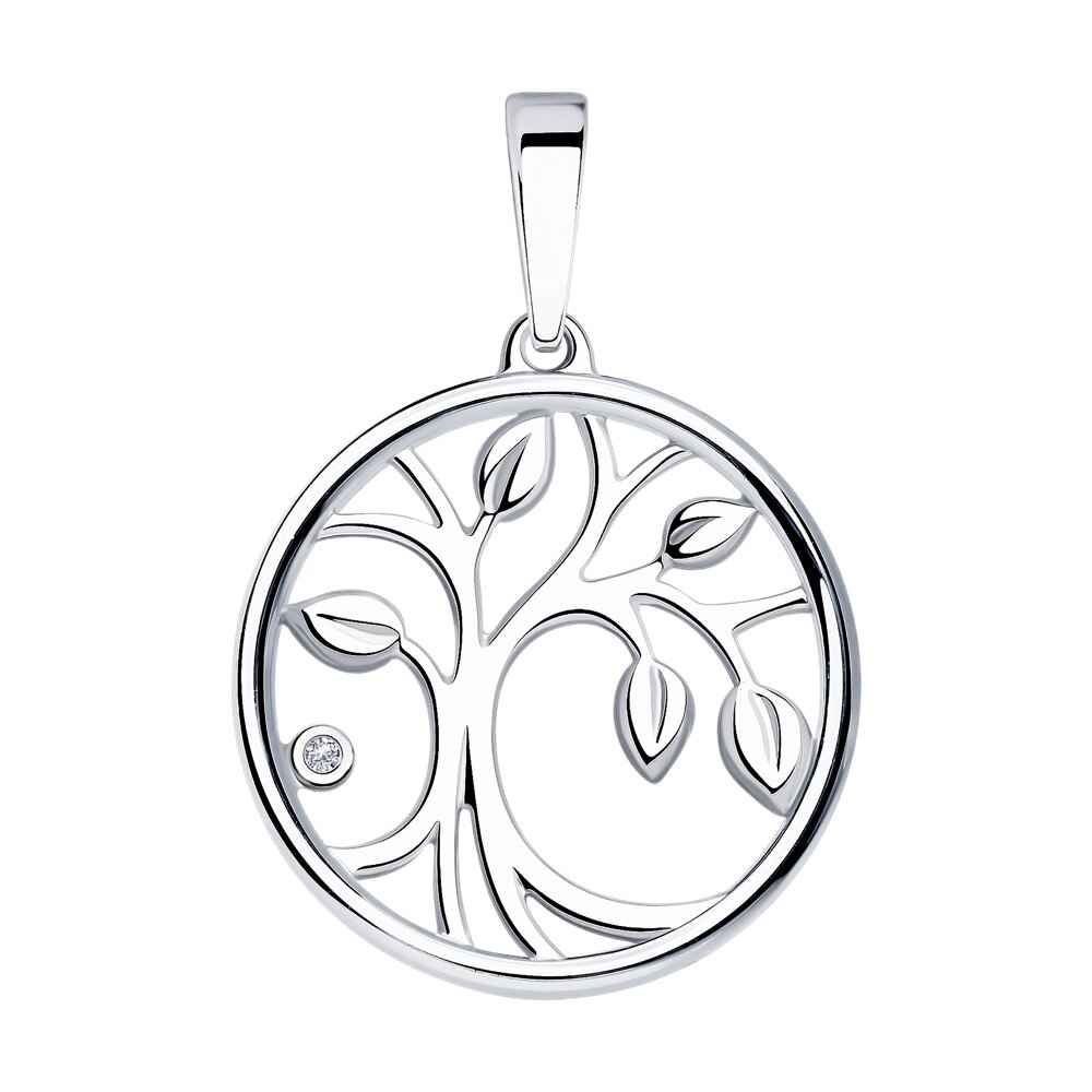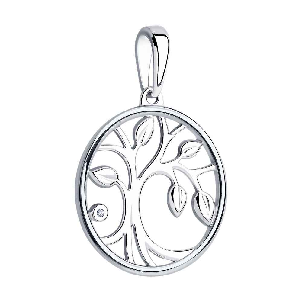 Нежен сребърен медальон дърво на живота с инкрустиран естествен диамант. Бижуто е с перфектна полировка и прецизно родиево покритие.