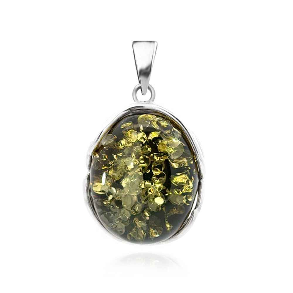Открийте магията на природата с този елегантен сребърен медальон с овален зелен балтийски кехлибар, изпълнен с фини балончета, създаващи ефект на сияйна дълбочина. Семплият обков разкрива напълно естествената му красота.