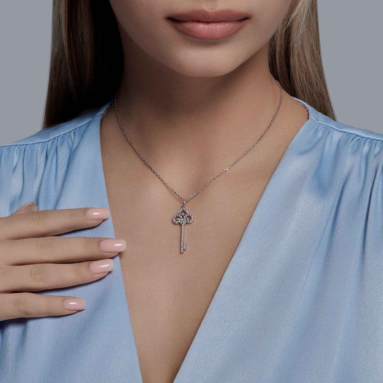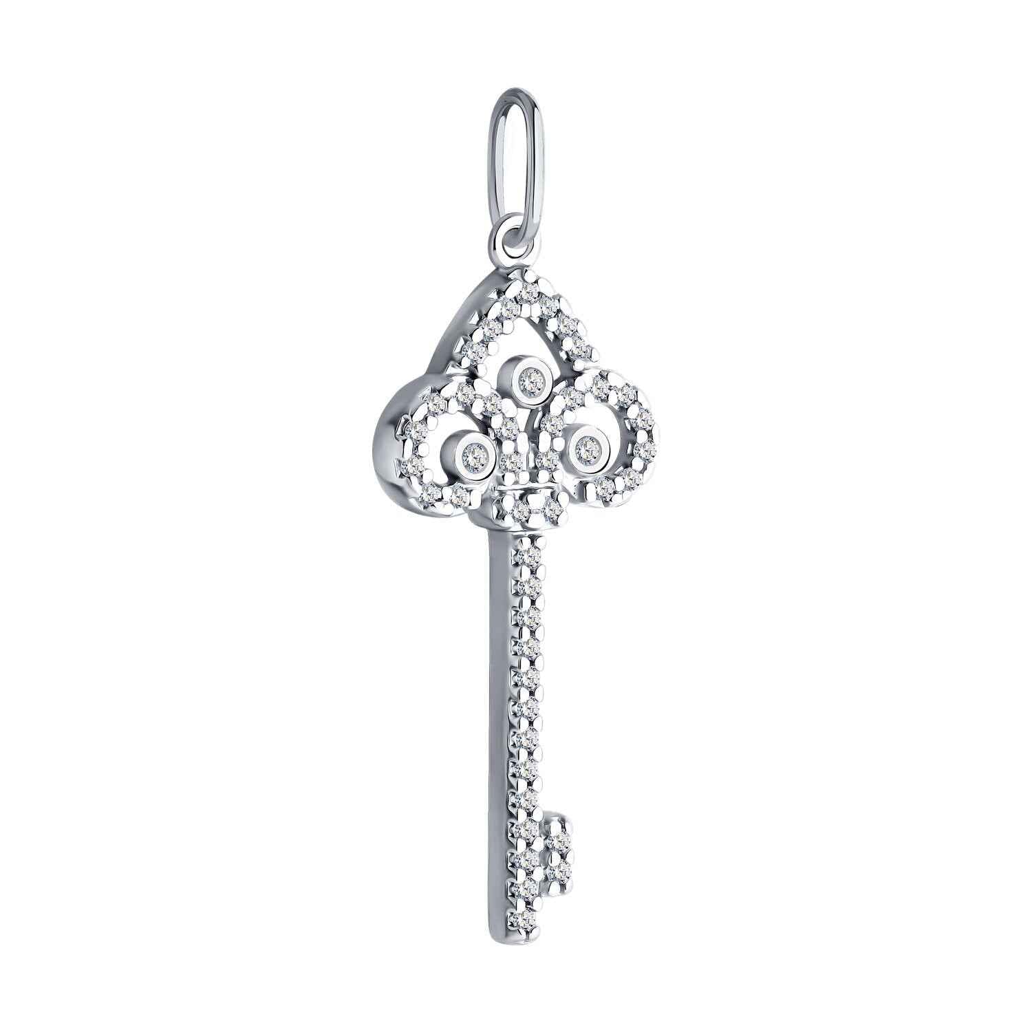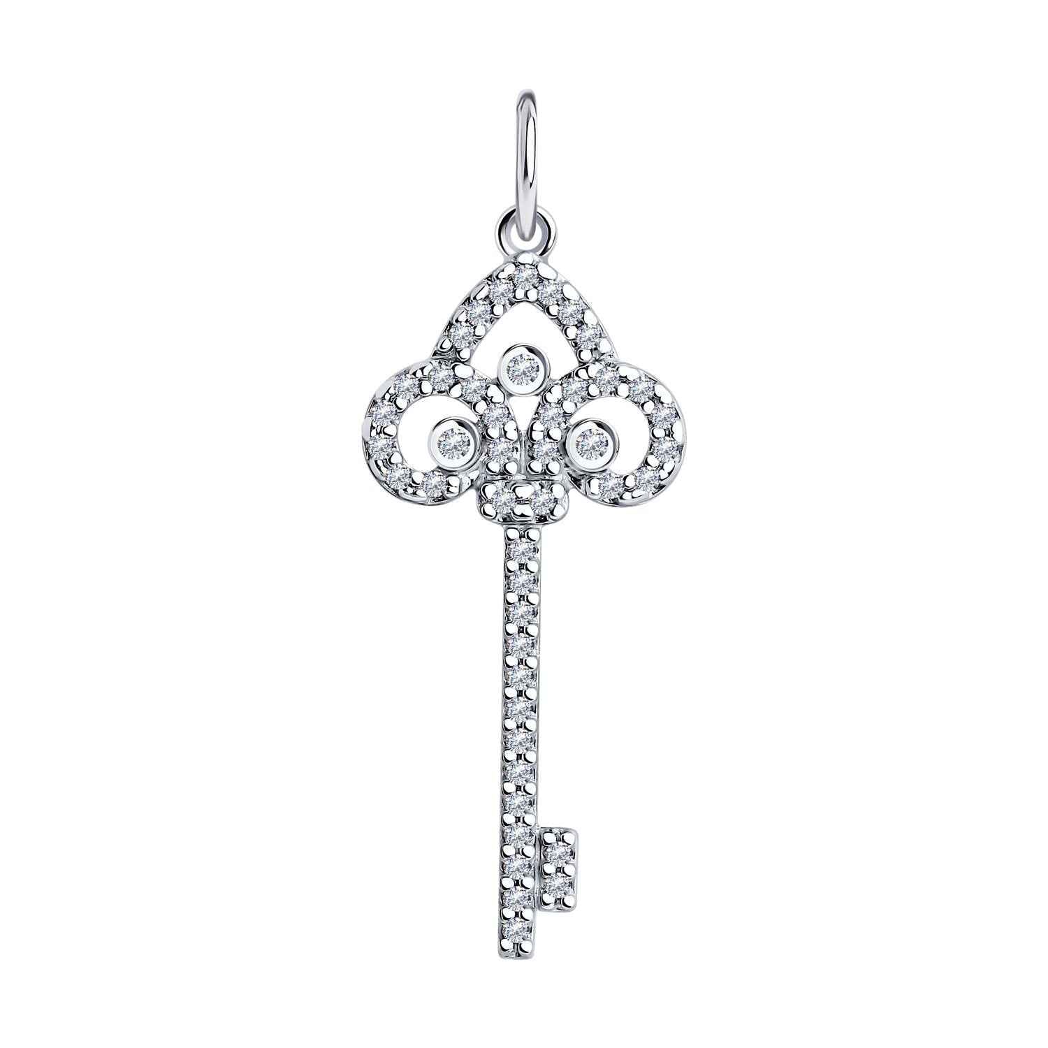Сребърен медальон ключ на бранда Sokolov. Бижуто е с перфектна изработка, прецизна инкрустация на камъните и родиево покритие, което предпазва среброто от оксидация. Прекрасен талисман, който да ви напомня, че имате силата да отключвате хубавите неща в живота.