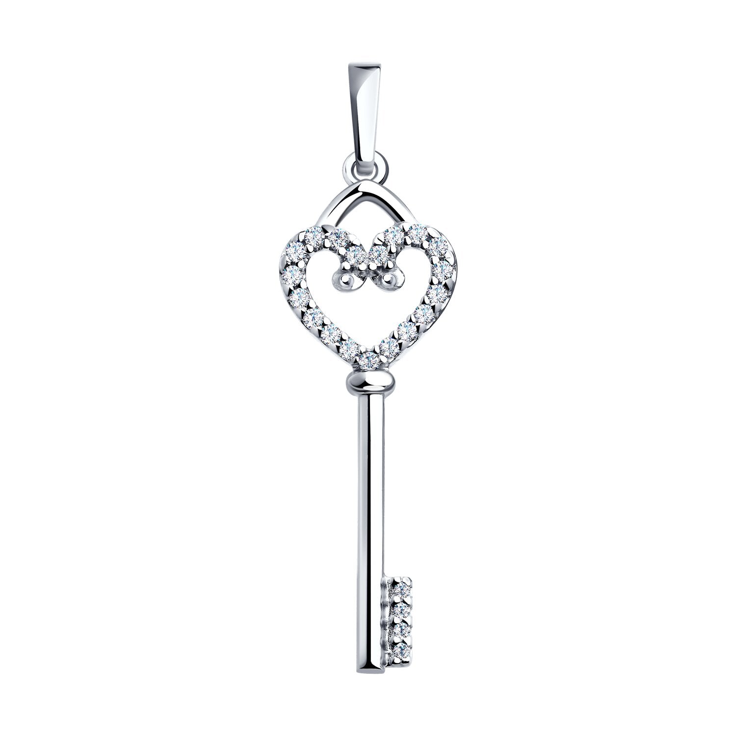 Сребърен медальон ключ със сърце на бранда Sokolov. Малък талисман за моментите, в които имаме нужда от вяра и добра мисъл, за да открием това, за което най-силно мечтаем. Бижуто е с перфектна изработка, прецизна инкрустация на камъните и родиево покритие, което предпазва среброто от оксидация.