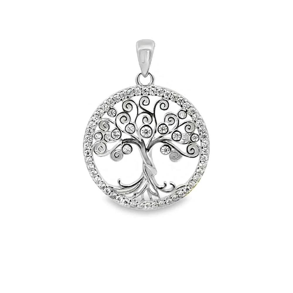 Сребърен медальон „Дървото на живота“ с изящна орнаментика и блестящи цирконии. Символ на сила, хармония и ново начало.