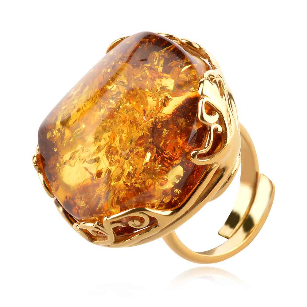 Сребърен пръстен с позлата и красив Балтийски кехлибар в цвят коняк и много инклузии. Халката на пръстена е отворена в основата и размерът може да бъде коригиран. Прецизният, ръчно ваян обков с фини орнаменти, подчертава красотата на камъка и превръща бижуто в уникат. Воечатляващо бижу, за всички онези специални моменти!