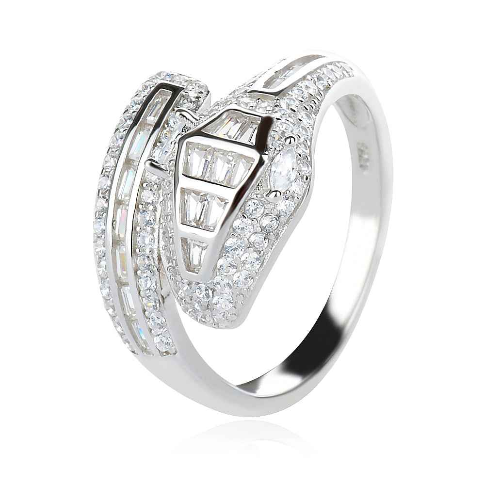 Ефектен сребърен пръстен с форма на змия, обсипана в цирконий с различни размери и форми за красив релеф и блясък. Халката е фиксирана и размерът не подлежи на корекция. Бижуто е с прецизно родиево покритие, което предпазва среброто от оксидация.