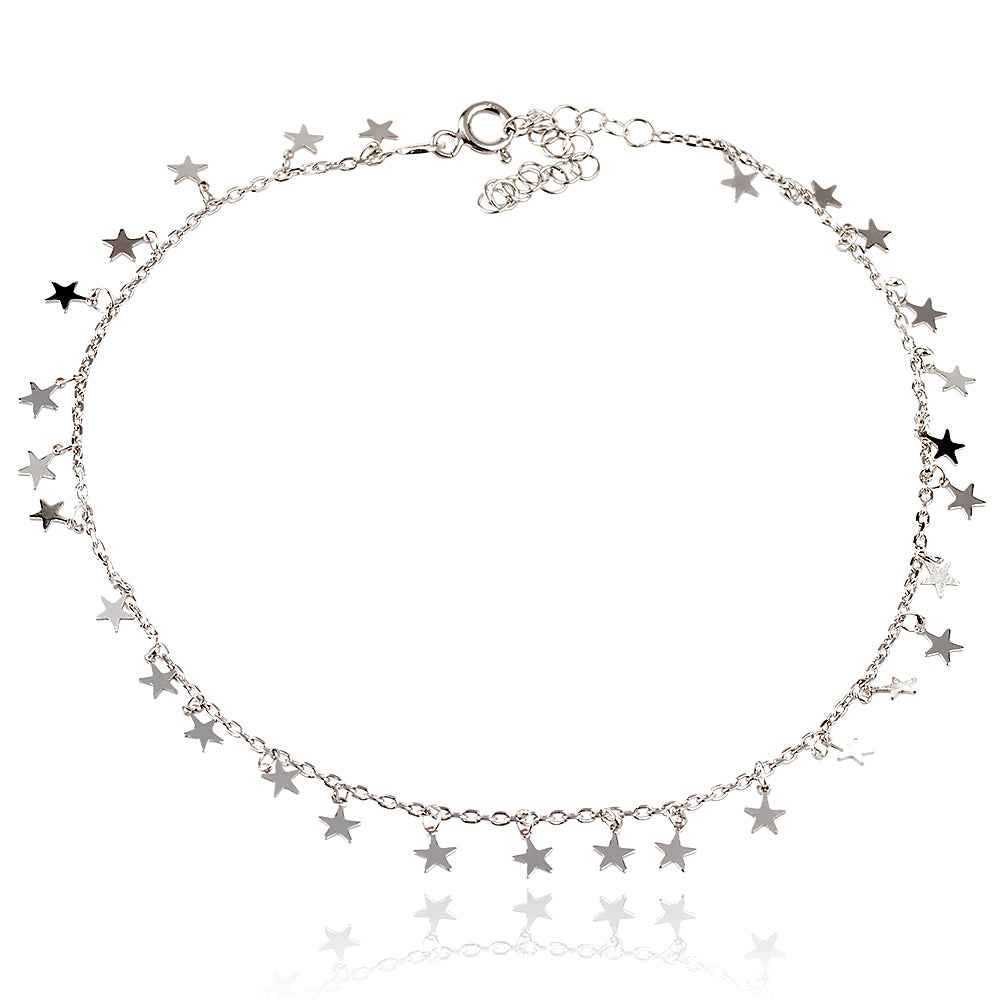 Сребърна гривна за глезен с малки полирани трептящи звездички. В края на гривната има удължител от халкички, който позволява регулиране на дължината. Бижуто е с родиево покритие, което предпазва среброто от оксидация.