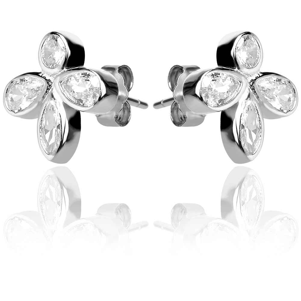 Сребърни обеци на щифт с цирконии.