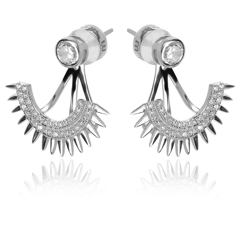 Сребърни обеци с родиево покритие и цирконии в стил APM Monaco. Обеците са от две части и могат да се трансформират в няколко варианта (виж видео)