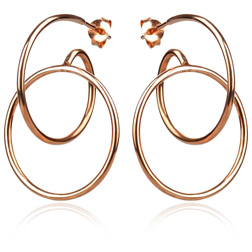 Сребърни обеци с розова позлата. Един абастрактен 3D ефирен дизайн с минималистично излъчване и перфектна полировка. Закопчаването е на щифт. Обеците са олекотени.
