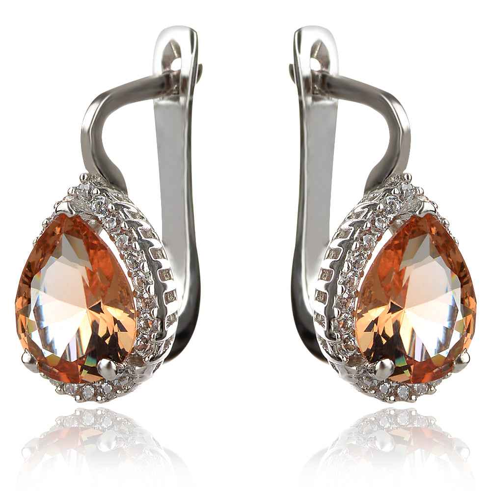 Малки сребърни обеци със султанит капка в рамка от бели кръгли цирконии. Обеците са на удоно английско закопчаване.