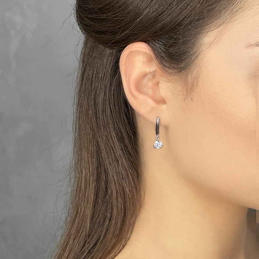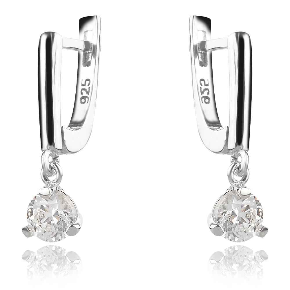 Леко висящи сребърни обеци с оригинални цирконии на Swarovski. Обеците са с удобно английско закопчаване.