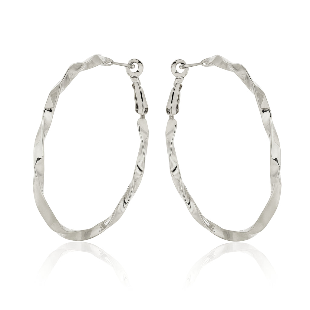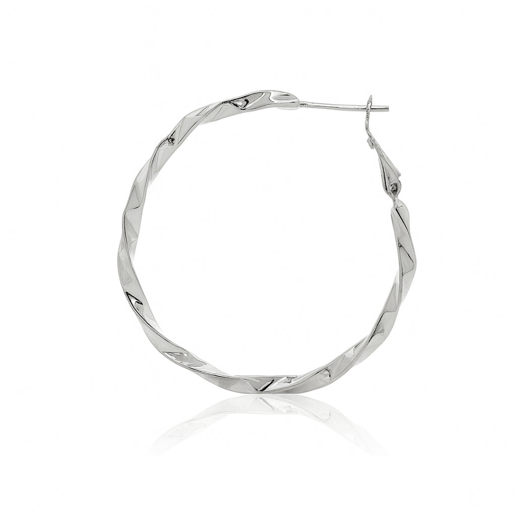 Сребърни обеци халки с текстурирана форма и огледална полировка – балансиран акцент за градски стил.