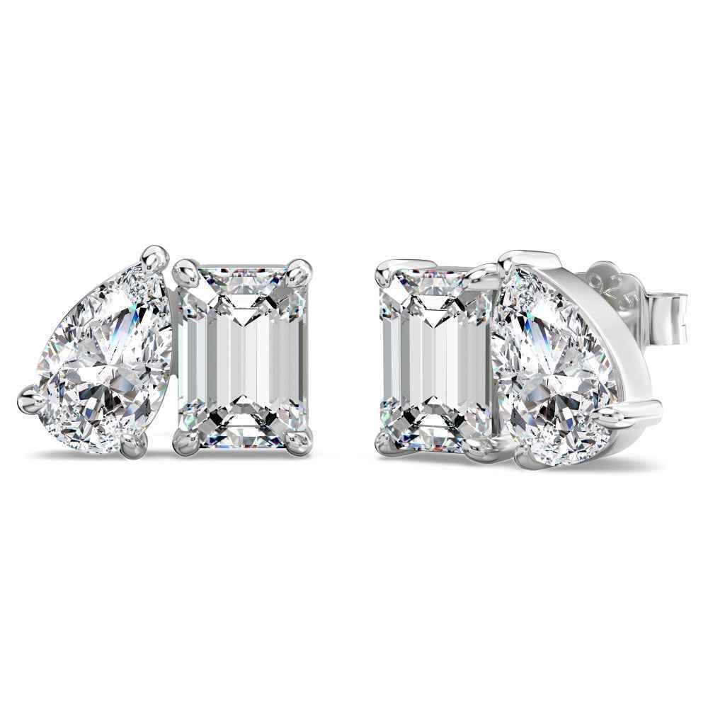 Сребърни обеци Toi et Moi с два различни по форма кубични циркония. Елегантен и символичен дизайн, вдъхновен от хармонията между контраста.