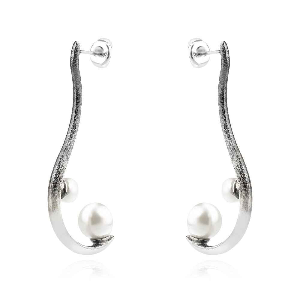 Ако търсите ефектни сребърни обеци с перли, това е вашият перфектен чифт- модерен дизайн, матиран финиш на среброто с оксидация, която контрастира с цвета на перлите и елегантна форма, която подчертава контура на лицето. Закопчаването е на щифт.