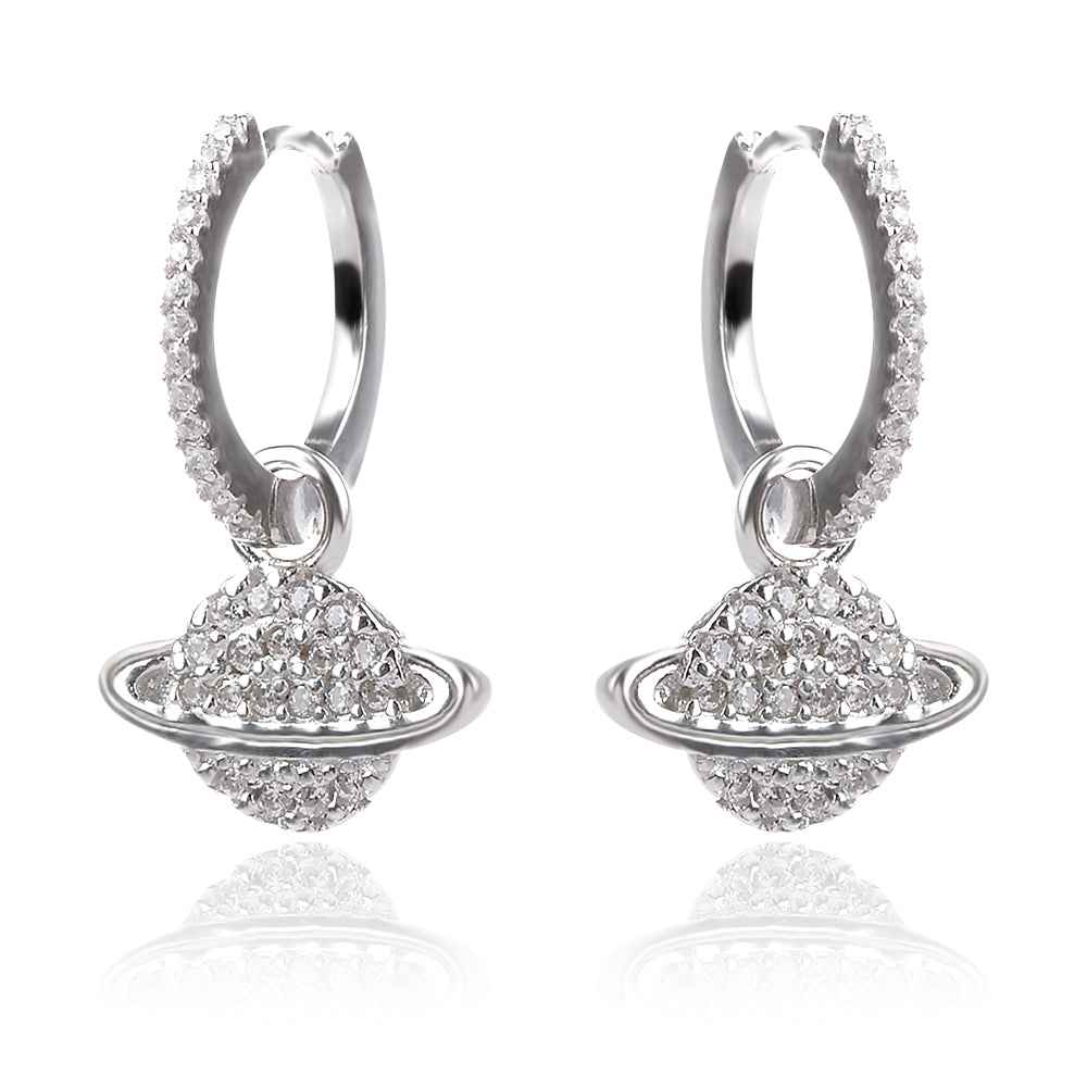 Сребърни обеци планети, стил APM Monaco. Космически сладки, тези малки сатурни ще разчупят всяка артистична или по-семпла визия. Моделът е две в едно- малките планети са подвижни и халкичките, обсипани от с циркони, могат да се носят отделно в случаите, които изискват по-семпло бижу.