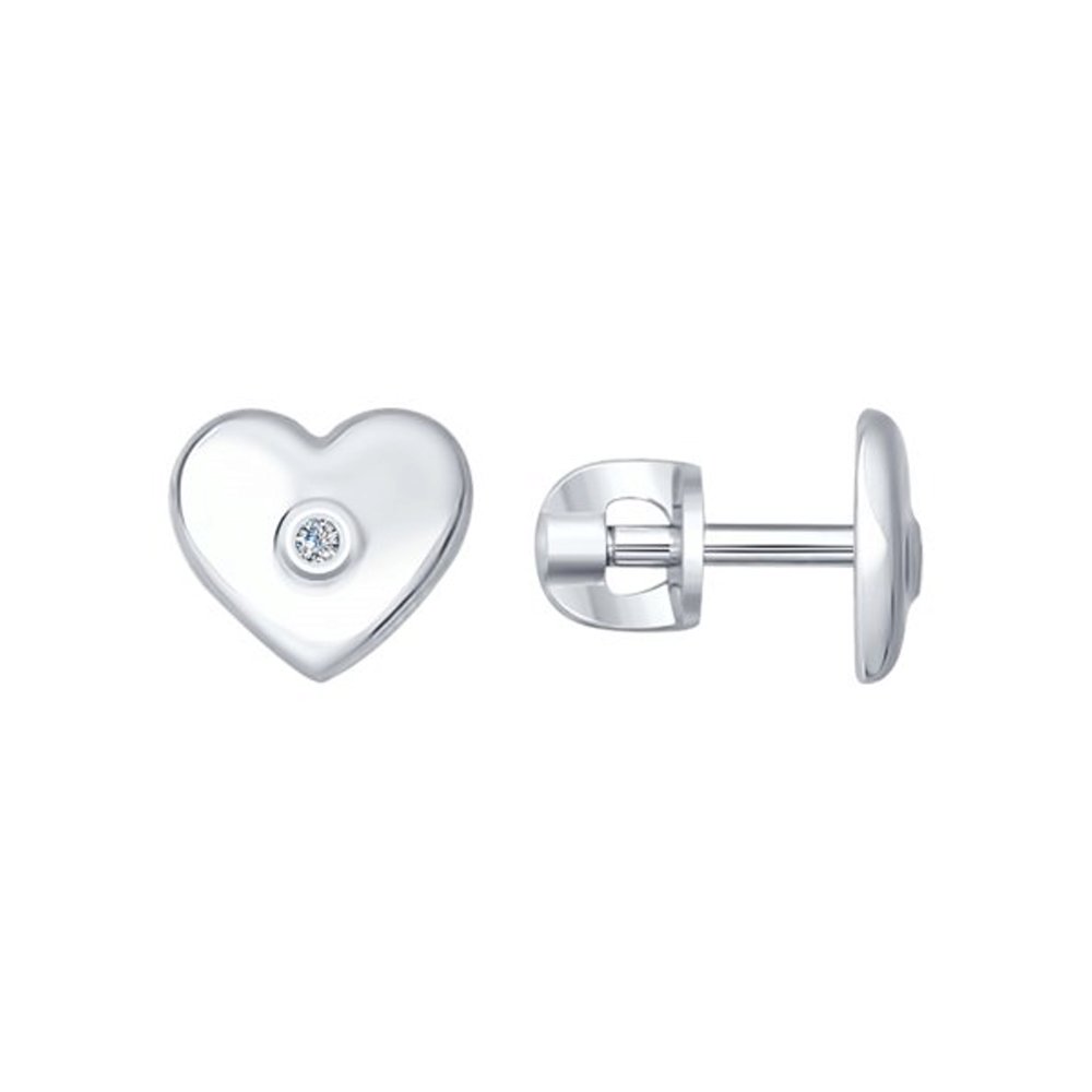 Деликатни сребърни обеци сърца с перфектна полировка, родиево покритие и диаманти. Обеците се закопчават с винт на резба.