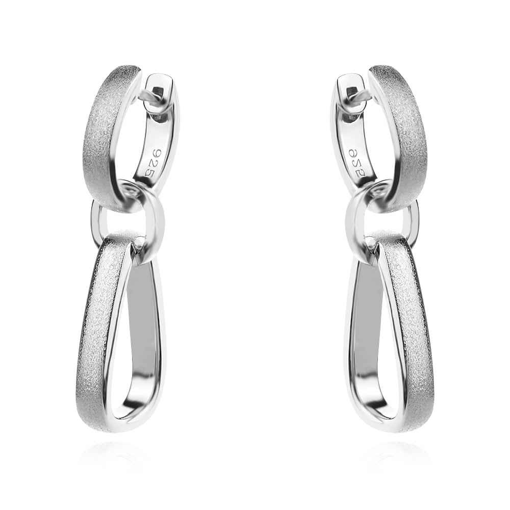 TRANSFORMERS! Висящи сребърни обеци с минималистичен дизайн и матирана лазерна обработка. Обеците са от две части и след като се свали удължената капковидна част, с лекота се трансформират в малки семпли халкички по ухото.