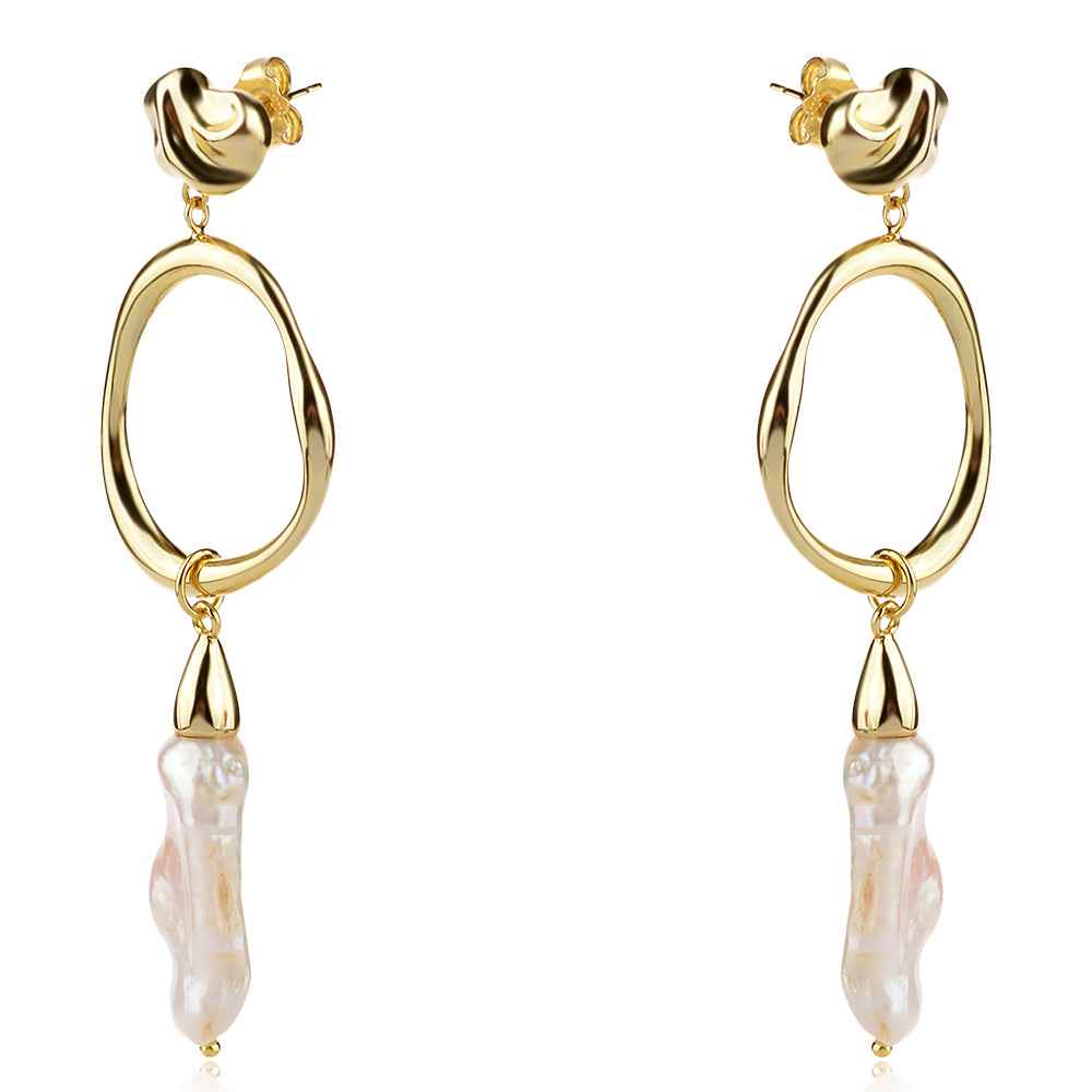Сребърни обеци - White Keshi Baroque Goldie
