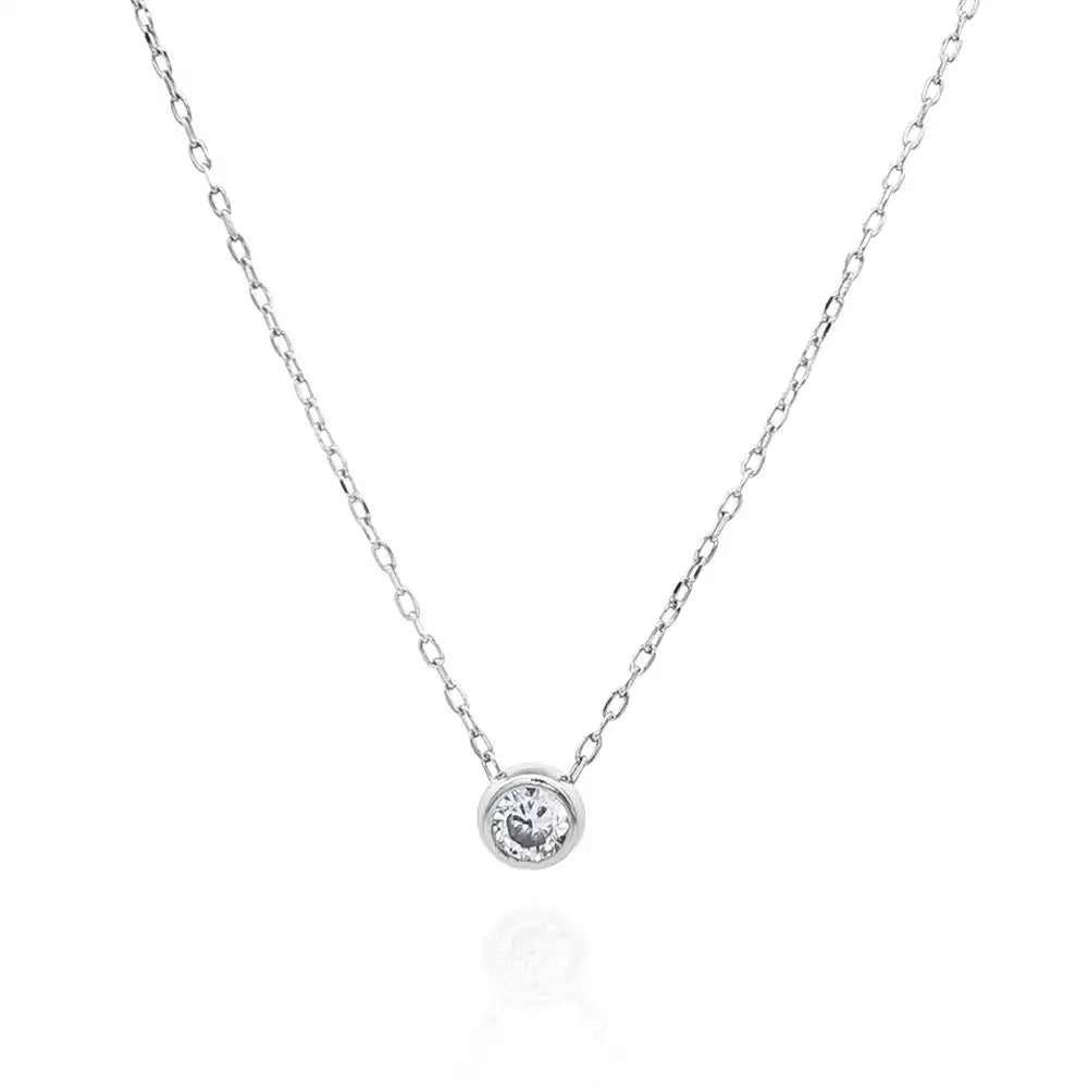 Минималистично сребърно колие със солитер цирконий и родиево покритие.