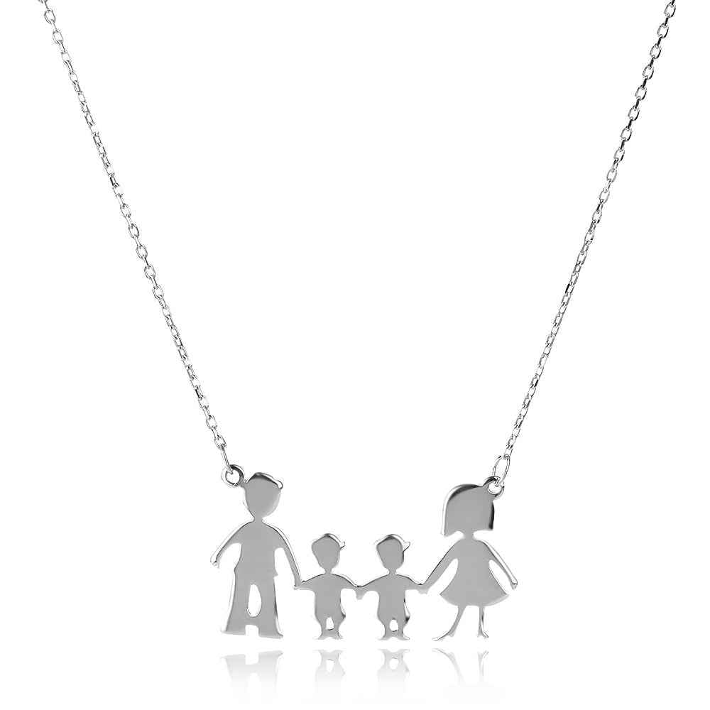 Италианско сребърно колие "Семейство"- мама, татко и две момчета.